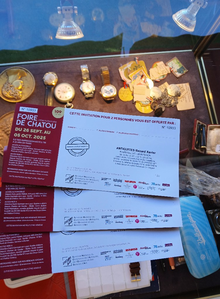 Invitations à la foire de Chatou Il me reste des invitations ! N’hésitez pas a m’appeler… 06 12 86 10 87